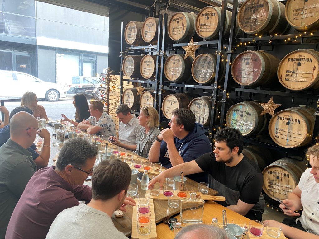 A Gin Masterclass was held in the distillery and curated and led by PLC to showcase a selection of their most popular products, providing education on the historical origins of Navy Strength Gin and why it was needed for the gunpowder trade historically. We then moved on to learn about the sourcing of local Riverland produce for our new favourite Blood Orange Gin and the continued pursuit of perfecting PLC’s limited edition Christmas Gin.